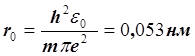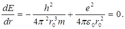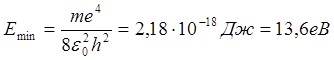 Ми одержали формулу й значення для радіуса першої “орбіти” електрона в атомі водню. Підставляючи значення r0 у рівняння ( 1.1.20) , знаходимо вираз для мінімальної енергії електрона в атомі водню: