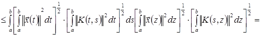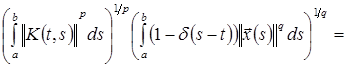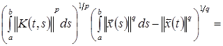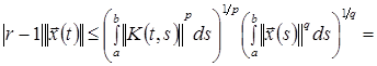 . Из определения нормы интегрального оператора, неравенства Гельдера и леммы 1 при