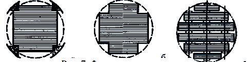 Форма поперечного сечения стержней зависит от мощности трансформатора: в небольших трансформаторах применяют стержни прямоугольного сечения (рис.7, а), в трансформаторах средней и большой мощности — стержни ступенчатого сечения (рис.7, б, в) с числом ступеней, возрастающим с увеличением мощности трансформатора. Ступенчатое сечение стержней обеспечивает лучшее использование площади внутри обмотки, так как периметр ступенчатого стержня приближается к окружности. В трансформаторах большой мощности для улучшения теплоотдачи между пакетами стали магнитопровода устраивают вентиляционные каналы (рис.7, в).