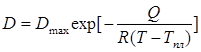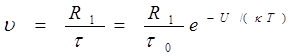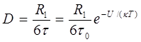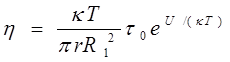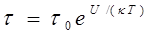 де τ0 — період коливань молекули біля положення рівноваги; U— висота потенційного бар'єру, який відділяє один від одного два сусідні положення рівноваги; k— постійна Больцмана; T— термодинамічна температура. Числове значення τ залежить від будови і в'язкості рідини. По теоретичних розрахунках І. 3. Фішера, для аргону поблизу потрійної точки τ = 2,3 · 10-13 с; для води при кімнатній температурі τ = 10-10 с, τ0 = 1,4 · 10-12 с. Отже, кожна молекула води здійснює близько 100 коливань щодо одного і того ж положення рівноваги, перш ніж змінити місце.