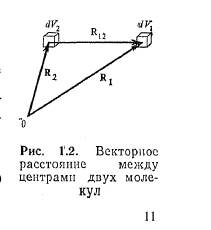 Нехай система з N однакових атомів займає об'єм V. Виберемо в ньому два елементи об'єму dV1 і dV2 що фіксуються векторами R 1 і R 2 проведеними з деякої точки (мал. 1.2).