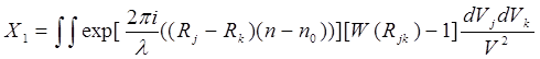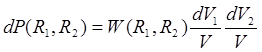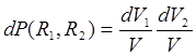 Якщо взаємне розташування атомів хаотичне, то вірогідність того, що атом 1 знаходиться в елементі об'єму dV1 а атом 2в той же час в dV2 , через незалежність їх положень рівна: