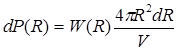 Рівність (8) можна виразити в іншій формі. Для цього сумістимо початок координат з центром атома 1 і опишемо навколо нього дві концентричні сфери радіусу R і R+dR . Вірогідністьвиявлення атома 2 в сферичному об'ємі 4πR2 dRна відстані від R до R+dR від центру атома 1 рівна:
