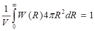 показуючому, що сума вірогідності знаходження даного атома на всіх можливих відстанях від фіксованого рівна одиниці. Функція W(R) називається радіальною функцією розподілу атомів або молекул. Її значення визначають вірогідність виявлення якого-небудь атома на відстані Rвід фіксованого атома. Оскільки сили відштовхування перешкоджають взаємному проникненню атомів, то в інтервалі 0 ≤ R < 2r( r — радіус атома) функція W(R)= 0. При R→∞ вона прагне до одиниці.