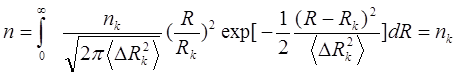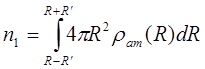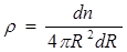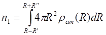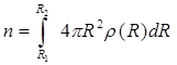Припустимо, що в шарі 4πR2 dRзнаходиться dn атомів. Тоді число атомів в одиниці об'єму цього шару визначиться формулою: