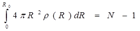 рівний числу атомів в об'ємі V, за винятком фіксованого атома. Якщо це число постійно, то в якості об'єму інтеграції приймається сфера, обмежена уявною поверхнею радіусу R0