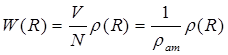 де ρат — середнє число атомів в одиниці об'єму. Згідно цьому співвідношенню значення W(R) рівні відношенню істинної кількості атомів в одиниці об'єму до середньої атомної густини. Тому W(R) має сенс відносної радіальній функції розподілу. Функція W(R) є найважливішою і основною характеристикою структури атомарних рідин і аморфних тіл.