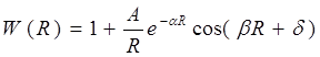 де A, α, β, і δ— постійні параметри. Наприклад, для аргону А = 9,51 Å; α= 0,30 Å -1 ; σ =2,12 Å -1 ; δ = —2,25. Функція W(R) обчислена по цій формулі, володіє такою ж залежністю від R як і експериментально визначувані функції розподілу для одноатомних щільно упакованих рідин.