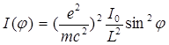 Припустимо, що на вільний електрон направлений пучок паралельних монохроматичних рентгенівських променів, інтенсивність яких I0 .Електрон під дією вектора електромагнітної хвилі здійснює коливання, випромінюючи вторинні хвилі. Кутовий розподіл інтенсивності цих хвиль залежить від стану поляризації первинного рентгенівського випромінювання. Якщо вони поляризовані, то інтенсивність розсіювання одним електроном, що фіксується в точці на відстані L від електрона, виражається формулою