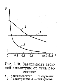 Рентгенографічні, електронографічні і нейтронографічні дослідження атомної і молекулярної структур рідин і аморфних тіл ґрунтуються на аналізі кутового розподілу інтенсивності розсіяного рентгенівського випромінювання, електронів і нейтронів. Розсіювання речовиною цих трьох видів випромінювань не однакове, що пояснюється відмінністю їх фізичної природи. Рентгенівське випромінювання розсівається електронами атомів і молекул. Процес розсіювання не характерний звичному віддзеркаленню або заломленню. Рентгенівське випромінювання, взаємодіючи з електронами, приводить їх в коливальний рух. Коливаючись з тією ж частотою, що і електричний вектор первинної електромагнітної хвилі, електрони породжують вторинне електромагнітне випромінювання, що розповсюджується на всіх напрямках. Інтенсивність розсіяного випромінювання, що фіксується в деякій точці, пропорційна електронній густині атомів і молекул.