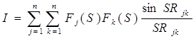 — інтенсивність, яка виходила б в аналогічних умовах від незалежних атомів. За визначенням,