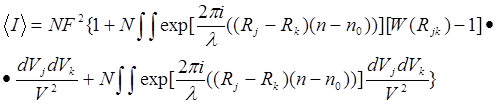 Хаотичне розташування атомів можливе лише в розріджених газах, коли власний об'єм атомів і сили взаємодії між ними можна не брати до уваги. У рідинах атоми не можуть знаходитися на довільній відстані один від одного, оскільки їх упаковка достатньо щільна. Вірогідність знаходження деякого атома в якій-небудь точці об'єму V залежить від того, в якій точці знаходиться інший атом. Такий вірогідний зв'язок між взаємним розташуванням атомів (їх кореляція) кількісно описується функцією W(R1 ,R2 ) Формулу (7) слід представити у вигляді: