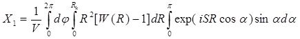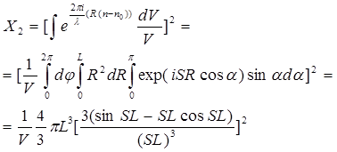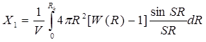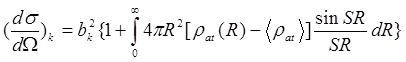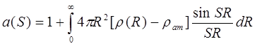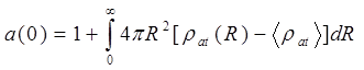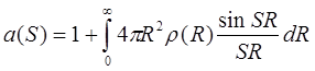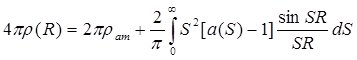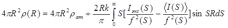 За умови, що для значення R= 0 функція ρ(R) = 0 ,asinSR/(SR) = 1. Средню атомну густину обчислюють по формулі