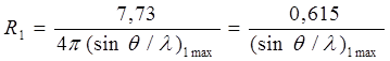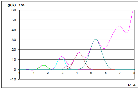 Цей результат показує, що якщо експериментальну криву інтенсивності обмежити малими значеннями Smax то на кривій радіального розподілу атомів окрім піку при R= Rk , відповідного k-йкоординаційній сфері, з'являється ряд побічних (помилкових) піків, що тягнуться в область розташування сусідніх піків. Помилкові максимуми розташовуються майже симетрично по обидві сторони від центрального максимуму. Їх положення знаходиться по формулі