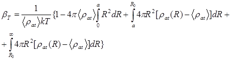 Її об'єм достатньо великий, щоб містити велике число атомів. При цьому передбачається, що атоми, розташовані поблизу поверхні сфери, мають те ж оточення, що і атоми, що знаходяться в її центрі. Співвідношення (14) і (15) визначають умови нормування функції атомної густини ρ(R) перша умова є точною для кристала, друга — для рідини. Зіставляючи функції (11) і (14), знаходимо