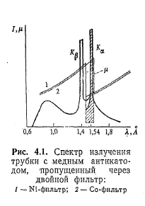 Теоретичні розрахунки показують, що значення нормуючого множника залежать від верхньої межі інтеграції в рівнянні (151). Межі можливих значень kможуть бути визначені по експериментальній кривій інтенсивності. Як вже відомо, інтенсивність когерентного розсіювання є величиною позитивною, отже,