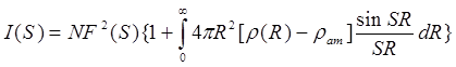 Як видно з малюнка, побічні максимуми відповідають приблизно цим же відстаням. Помилкові максимуми функції 4πR2 ρ(R) з періодом ΔR =±2,5π/ Smax можуть з'явитися через неточність вимірювання інтенсивності при великих кутах розсіювання. Це завжди треба мати на увазі, оскільки помилки вимірювання I(S)після множення на S можуть істотно спотворити результати.
