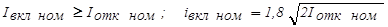 5. Номинальный ток включения — ток КЗ, который выключатель с соответствующим приводом способен включить без приваривания контактов и других повреждений, при U