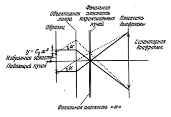 Рисунок 4 – Образование первого промежуточного изображения объективной линзой и эффект аберрации [5].