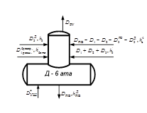 В схеме предусмотрены расширитель продувочной воды из котла. В расширитель поступает пароводяная смесь, которая разделяется в нем на относительно чистый пар, отводимый в деаэратор Д-6 ата, и воду (сепарат или концентрат), с которой выводится примеси (соли и т.п.), удаляемые из парогенератора с продувочной водой. После расширителя первой ступени, пар поступает в деаэратор 0,6 МПа, а вода из первой ступени поступает во вторую. Выпар второй ступени поступает в деаэратор 0,12МПа, а вода поступает в линию сетевой воды, перед ПСГ1.
