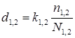 де k1,2 – коефіцієнт пропорційності (в нашому випадку k1 = k2 = 1);