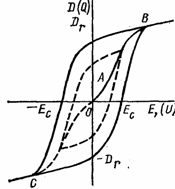 В отсутствии внешнего электрического поля сегнетоэлектрики, как правило, имеют доменную структуру, то есть разбиваются на микроскопические области, обладающие спонтанной поляризацией. В принципе, у ферромагнетиков также имеются домены – области спонтанного намагничивания, поэтому поведение сегнетоэлектриков в электрическом поле подобно поведению ферромагнетиков в магнитном поле. Единственным различием между сегнетоэлектриками и ферромагнетиками является то, что при помещении их в электрическое поле меняется вектор электрического смещения D = E + P , а у ферромагнетиков при помещении в магнитное поле меняется индукция B = H +I .