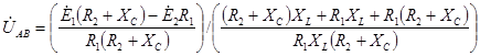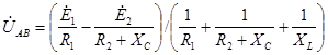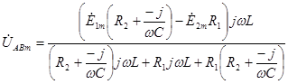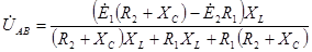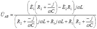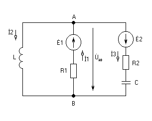 В реальных электрических цепях очень часто несколько источников и приёмников электрической энергии включаются параллельно. Схема замещения такой цепи, содержащей активные и пассивные ветви, соединённые параллельно, имеет только два узла, например узлы А и В. Для определения токов во всех ветвях достаточно найти напряжение между двумя узлами. Формулу для этого напряжения можно получить, используя принцип суперпозиции.