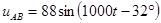 4) записать уравнения для мгновенных значений тока в одной из ветвей и напряжения между узлами электрической цепи. Построить эти функции на одном временном графике.