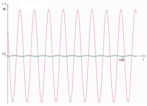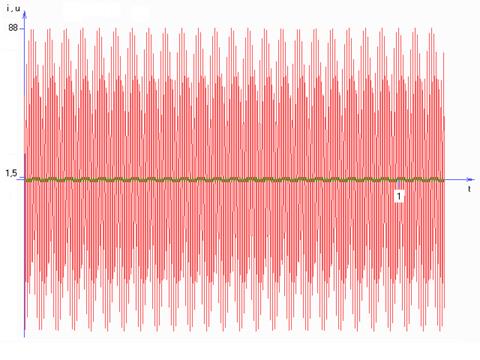 2.4 Построение временных графиков мгновенных значений тока в одной из ветвей и напряжения между узлами электрической цепи