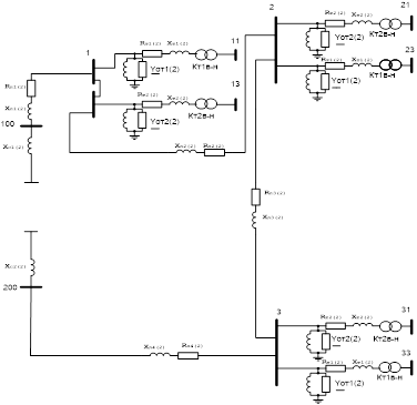 Розрахунок виконаний для мережі 35 кВ . За балансуючі вузли (100 і 200 ) були прийняті шини 35 кВ підстанції «Ст. Самбір-Т» та підстанції «Чижки-68» відповідно. Напруга у цих вузлах підтримувалась на рівні 37.8кВ . Мінімальні навантаження складають 60% від максимальних.
