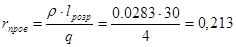 ρ = 28,9 Ом·мм2 /км - питомий опір;