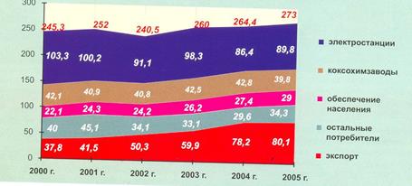 Таким образом, всего на российский рынок в 2005 году поставлено с учетом импорта 214 млн. т. угля и угольной продукции.