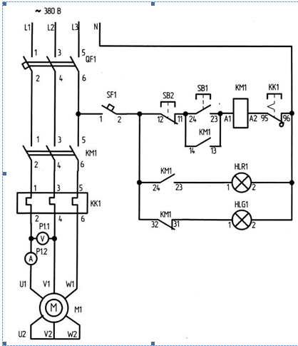 Контактор КМ1 предназначен для коммутации электрических цепей.