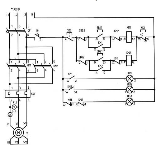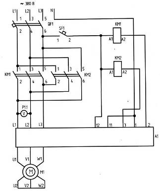р) нажмем и отпустим кнопку «Р» на мониторе блока А17. Двигатель М1 должен отключится от сети и через время t0=10c должен произойти его прямой пуск в обратном направлении