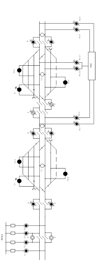 32. Соединитель электрический поперечный 33. Разъединитель однополюсный с ручным приводом: а) нормально включенный б) нормально отключенный 34. Разъединитель двухполюсный с ручным приводом: а) нормально включенный б) нормально отключенный 35. Разъединитель с ручным приводом и заземляющим ножом: а) нормально включенный б) нормально отключенный 36. Разъединитель однополюсный с электродвигательным приводом: а) нормально включенный б) нормально отключенный 37. Разъединитель двухполюсный с электродвигательным приводом: а) нормально включенный б) нормально отключенный 38. Разъединитель с телеуправлением: а) нормально включенный б) нормально отключенный 39. Разрядник роговый с двумя разрывами 40. Ограничитель перенапряжений 41. Отсасывающий трансформатор |