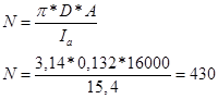 Число витков в обмотке якоря по формуле