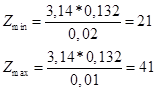 где t1 min и t1 max – зубцовые деления для высоты оси вращения 0,132 м равно 10 и 20, соответственно