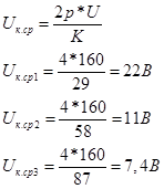 Поскольку Uк.ср должно быть в пределах 15-16 В применяем вариант 2 wc 2 =4
