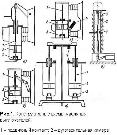 По типу, показанному на рис.1 а, изготавливаются выключатели ВМГ-10 (выключатель масляный подвесной), а ранее изготавливались выключатели ВМГ-133.