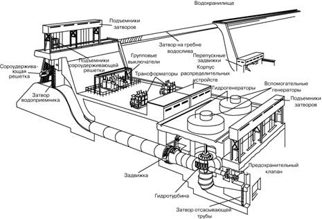 Русловые и приплотинные ГЭС. Это наиболее распространенные виды гидроэлектрических станций. Напор воды в них создается посредством установки плотины, полностью перегораживающей реку, или поднимающей уровень воды в ней на необходимую отметку. Такие гидроэлектростанции строят на многоводных равнинных реках, а также на горных реках, в местах, где русло реки более узкое, сжатое.