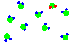 , испытываемого красными атомами водорода на молекуле воды.