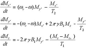 Правильное интегрирование, уравнения Блоха дает X', Y', и Z-составляющие намагниченности, как функции от времени.