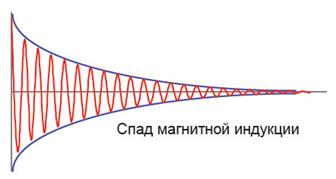 Расположение катушки под правильными углами к B0 преследует цель получение сигналов только от тех процессов, которые происходят под определенными углами к B0 . Это не что иное, как T2 релаксация. T2 релаксация – затухающий процесс, означающий высокую фазовую когерентность в начале процесса, но быстро уменьшающуюся до полного исчезновения когерентности в конце.