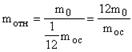 Относительной массой молекулы mотн называется величина, равная отношению абсолютной массы молекулы m0 к 1/12 массы атома углерода moc .