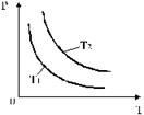 Опытным путем, задолго до появления молекулярно-кинетической теории, был открыт целый ряд законов, описывающих равновесные изопроцессы в идеальном газе. Изопроцесс - это равновесный процесс, при котором один из параметров состояния не изменяется (постоянен). Различают изотермический (T = const), изобарический (p = const), изохорический (V = const) изопроцессы. Изотермический процесс описывается законом Бойля-Мариотта: "если в ходе процесса масса и температура идеального газа не изменяются, то произведение давления газа на его объем есть величина постоянная PV = const(29). Графическое изображение уравнения состояния называют диаграммой состояния . В случае изопроцессов диаграммы состояния изображаются двумерными (плоскими) кривыми и называются соответственно изотермами, изобарами и изохорами.