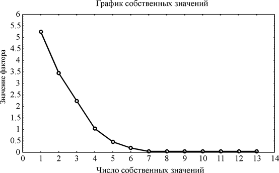 Рис. 3. График собственных значений факторов, связывающих оптические свойства ПС с параметрами их поверхности.