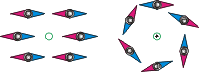 Магнитное поле кругового тока представляет собой некую восьмёрку с разделением колец в центре кольца, по которому течёт ток. Его схема показана на рисунке ниже: