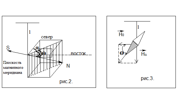 дают возможность определить величину и направление полной напряжённости магнитного поля Земли в данной точке. Если магнитная стрелка может свободно вращаться лишь вокруг вертикальной оси, то она будет устанавливаться под действием горизонтальной составляющей магнитного поля Земли в плоскости магнитного меридиана. Горизонтальная составляющая