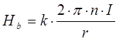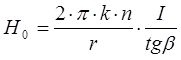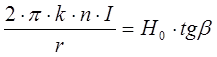 с другой стороны. Напряжённость магнитного поля в центре катушки тангенс–гальванометра равна: