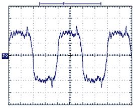 Импульс на нагрузке, защищенной ТУЗ (амплитуда снижена до15 В) |